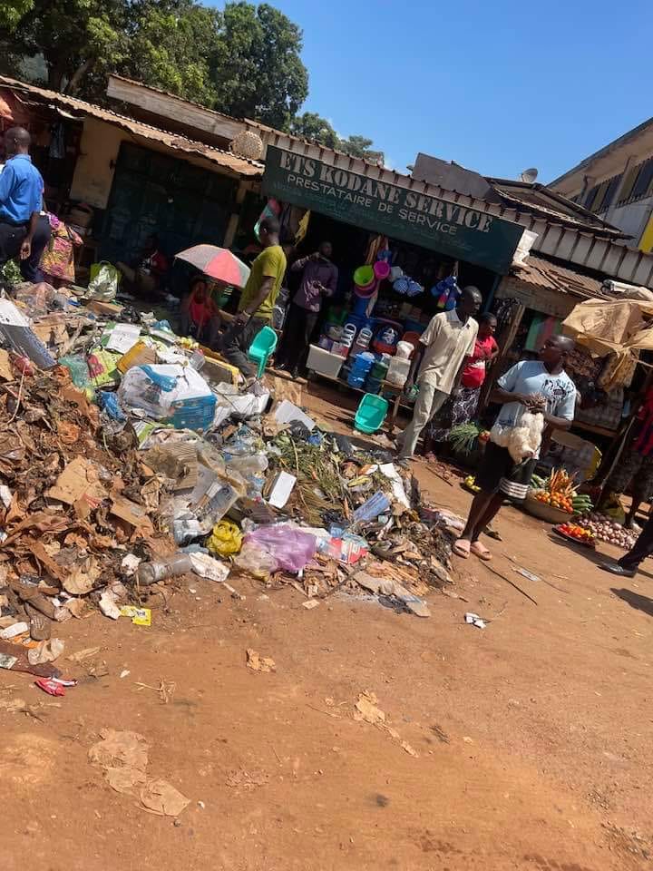 Des immondices ou détritus, non enlevés par la mairie de Bangui, s’amoncellent dans toutes les rues du centre-ville, principalement devant le marché central et desquels se dégagent des odeurs pestilentielles après chaque pluie et qui indispose tant les usagers que les commerçants du marché. Conséquences: difficulté de respirer – complications asthmatiques – prolifération des mouches qui infectent les aliments avec grands risques de contamination.