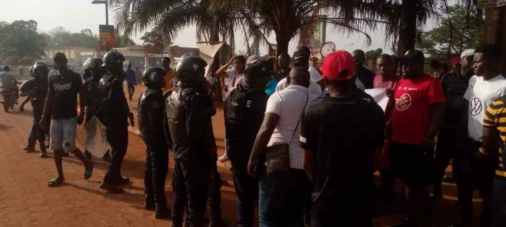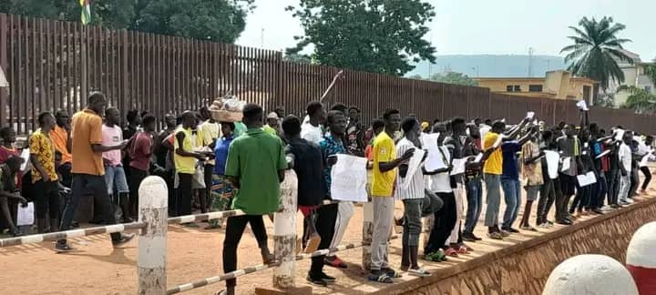 Le vendredi 12 avril 2024, la touaderacratie a mobilisé ses ramassis, payés 2000 fcfa chacun, pour une contre manifestation contre celle organisée par le Groupe de Travail de la Société Civile-GTSC pour dénoncer plusieurs carences du régime de Bangui, qui ont induit de nombreux décès. Ces jeunes de la touaderacratie, avec fanfare devant les installations de l’Energie Centrafricaine-ENERCA, la société d’Etat chargée de la production et de la distribution de l’électricité au centre ville, sont encadrés par la police, tandis que cette même police a été envoyée interdire la manifestation organisée par le GTSC, à la place des Martyrs : politique de deux (2) poids, deux (2) mesures qui ne surprend aucun Centrafricain.