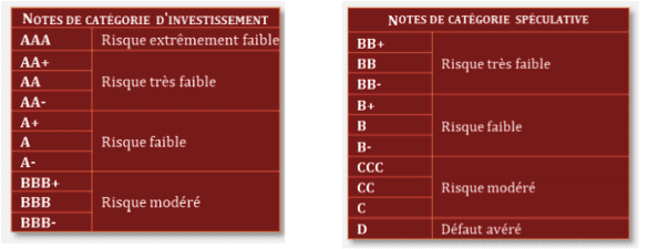 L’image fournie montre l’échelle de notation de Bloomfield Investment Corporation à long terme.. Les notes de catégories d’investissement vont de AAA (risque extrêmement faible) à BBB (risque modéré. Les notes de catégorie spéculative vont de BB+ (risque assez élevé) à D (défaut avéré).