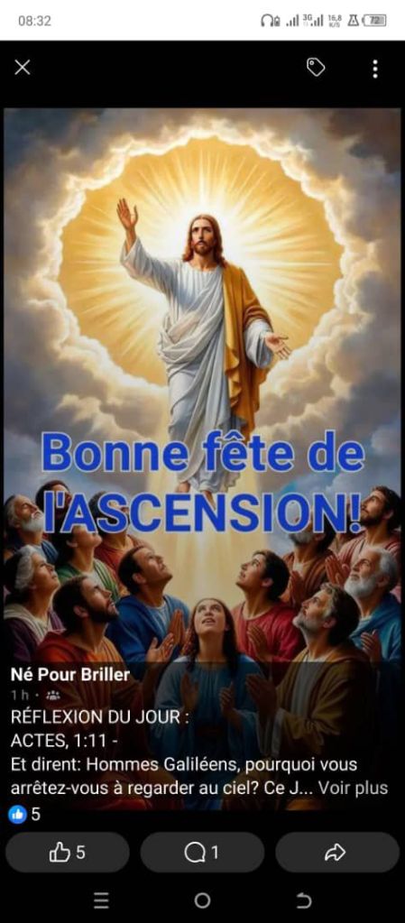 JOYEUX ET HEUREUX 2025ème ANNIVERSAIRE DE LA FÊTE DE L’ASCENSION. SOYEZ COMBLÉS EN CE JOUR DE LA GLOIRE ET DE LA SPLENDEUR DIVINES.