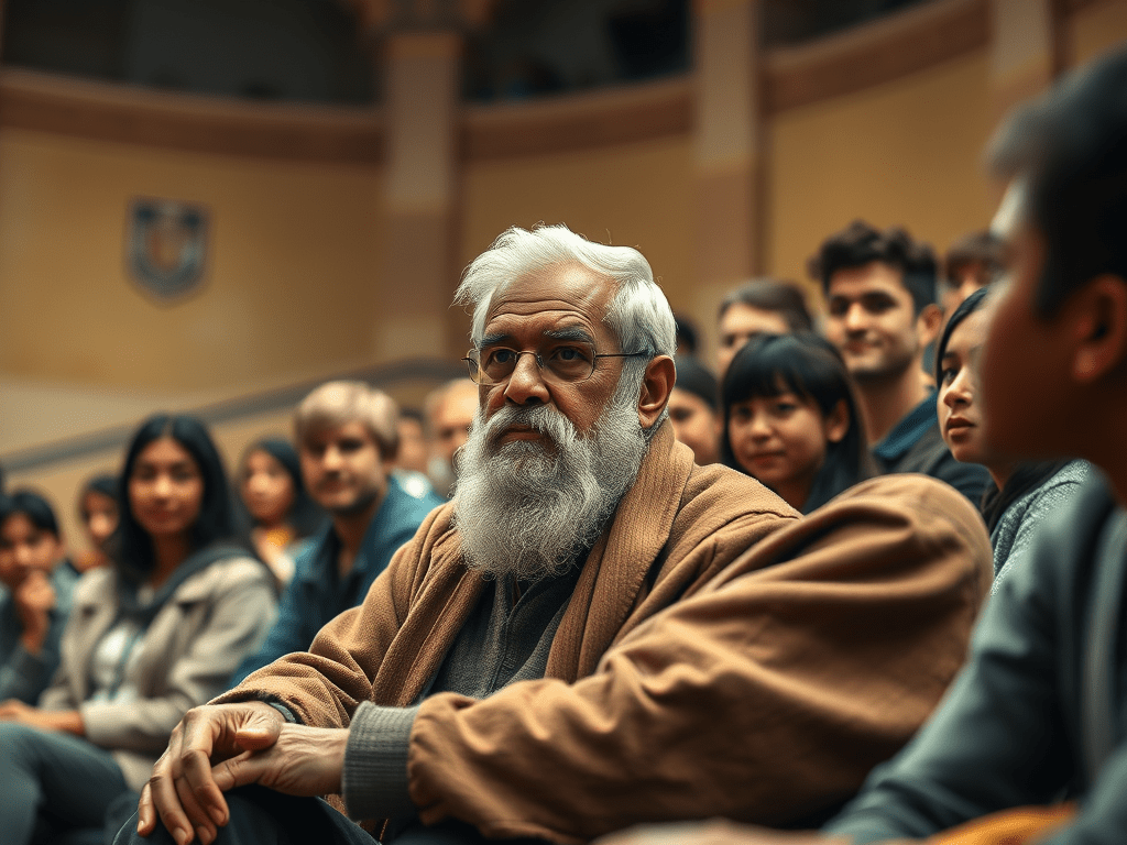Le premier jour des cours, un homme aux cheveux gris entra dans un amphithéâtre de la faculté des lettres. Les étudiants se levèrent automatiquement, croyant que c’était le professeur. Mais il leur sourit avec modestie et alla s’asseoir parmi eux.. A la fin du cours, plusieurs étudiants l’entourèrent, curieux: